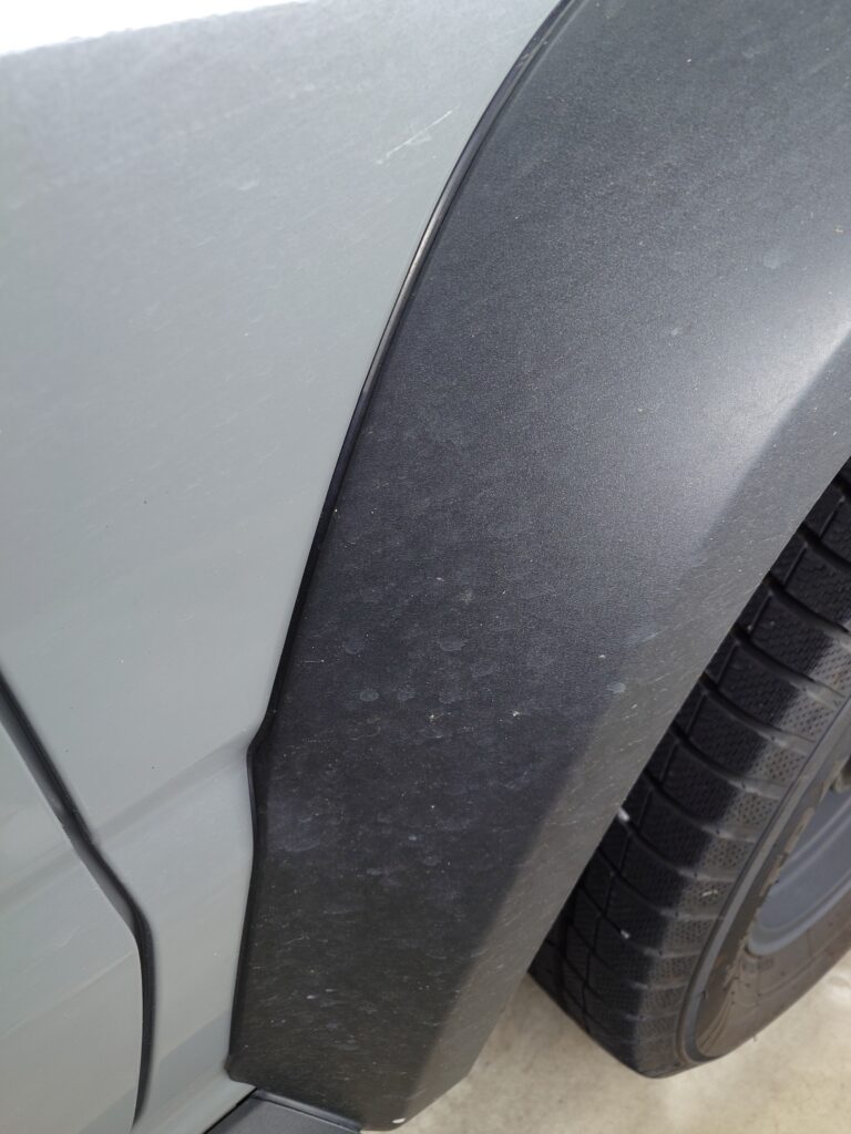 汚れを巻き上げやすい給油口やドアの内側もしっかり汚れやボディ表面に固着したシミなどをリセットし、トップコートを補強して完成です。