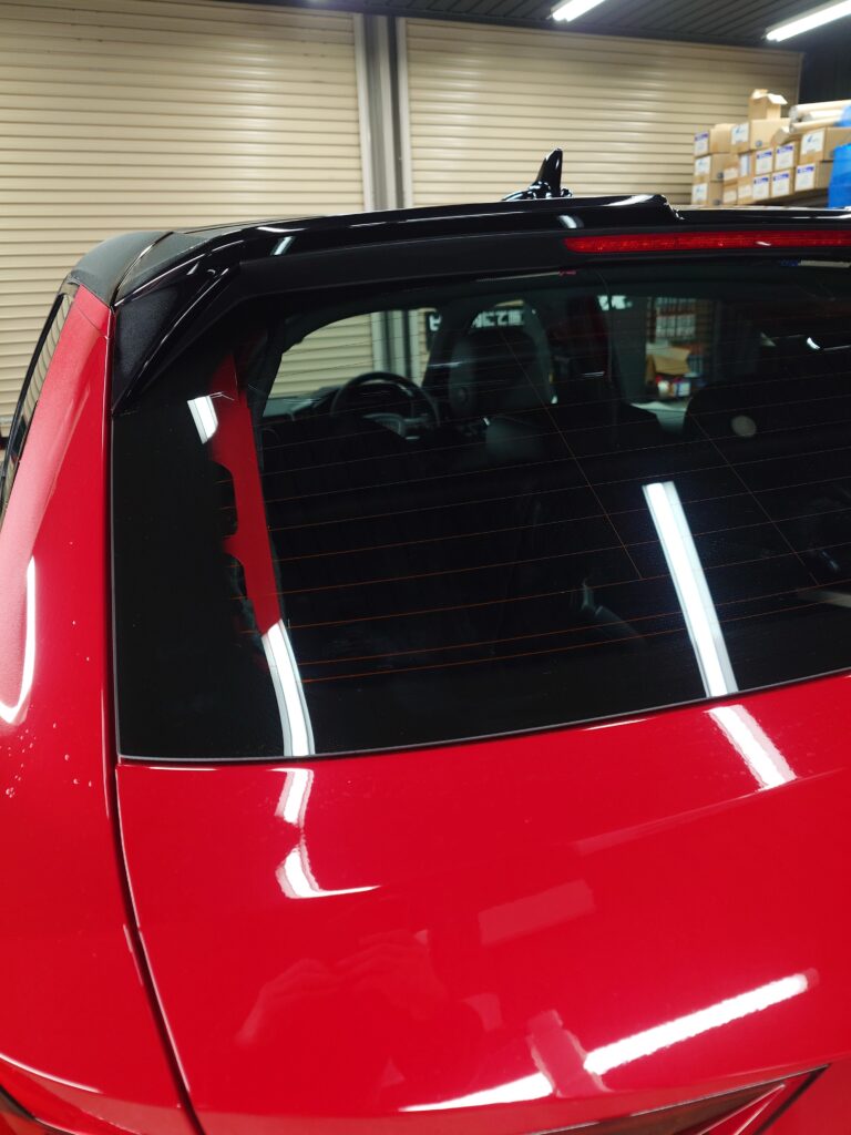 新車の状態ですがドライブレコーダーやバックカメラ取り付けの際の糊残りや油分の残留があるのでしっかり下地を整えて施工していきます。