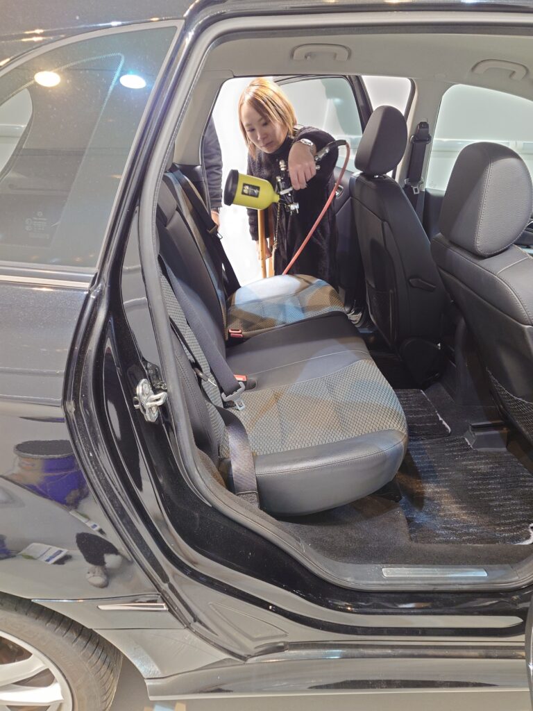 今回の施工車両は既販車でしたが、自己結合性酸化チタンという光触媒コーティングを吹き付けることで、蛍光灯のような微弱な光でも反応を始め、様々な菌やウイルスを大幅に低減、抗菌状態を保ちながら、アレルゲン(花粉、VOC)の付着や臭いを継続的に抑制します。