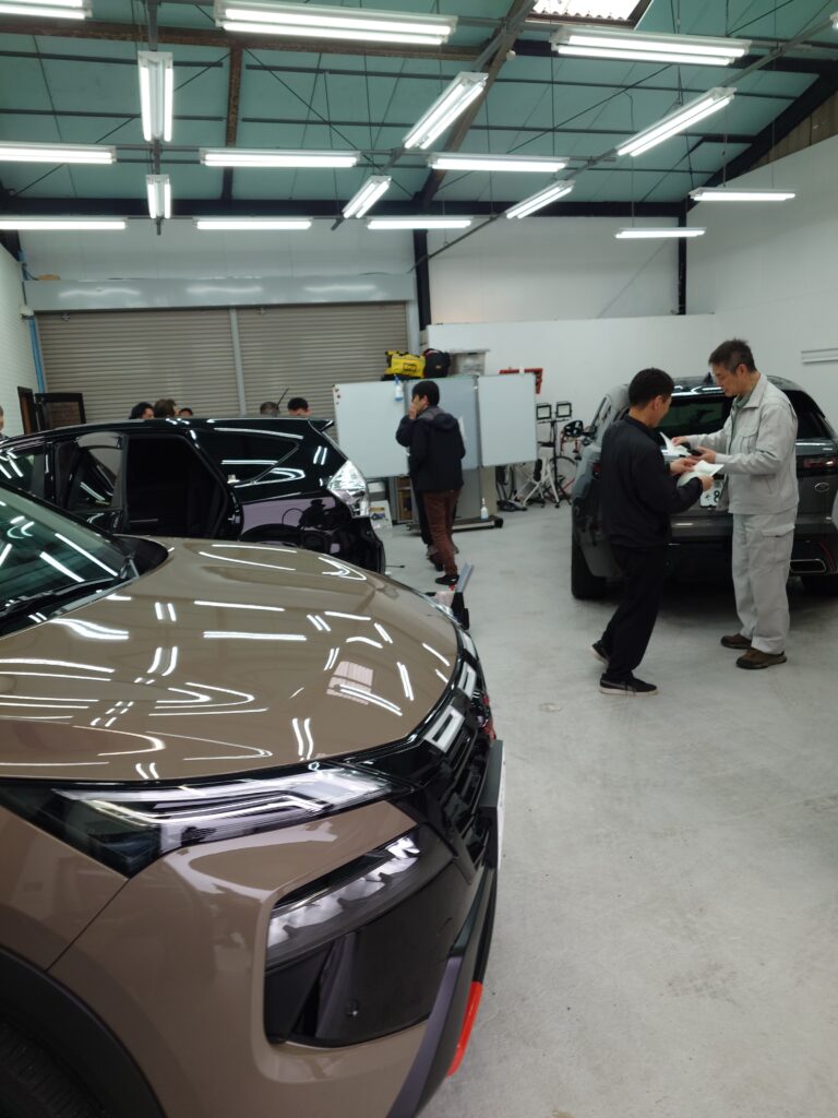 商品説明の後は、実車を使っての施工デモや体験会もありました。