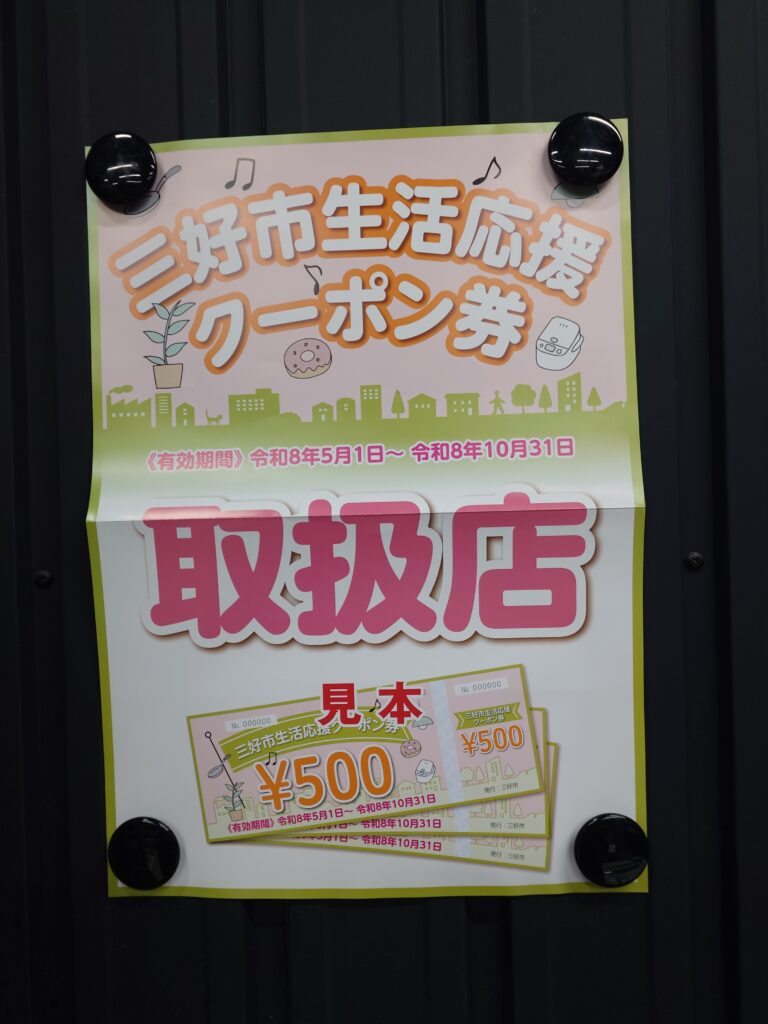 今年も令和8年5月1日(金)より実施される『令和8年度 三好市生活応援クーポン券』当店でもご利用いただけます。