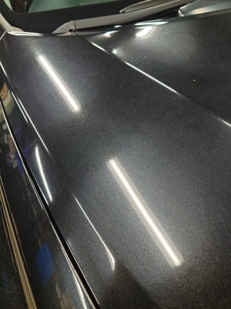 洗車機に通されていたようで、ボディは洗車キズやくすみで白くぼやけた状態です。